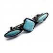 Witrażowa klamra wykonana metodą tiffany z kamieni turkusowego howlitu lutowana stopem cyny i srebra a następnie stylizowana na stare srebro i ręcznie polerowana. Wymiary klamry to 9 x 2.7 cm. Zapraszam do zakupu.