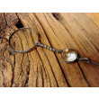 Lupa ma średnicę 6 cm ozdabiana szklaną kulą średnicy 25 mm oprawiona w miedź lutowaną stopem cyny i srebra. Długość lupy to ok. 15 cm. Całość patynowana na kolor starego srebra ręcznie przecierana i polerowana , zawieszona na 60 cm łańcuszku. Jeśli życzą sobie Państwo inną dowolną długość łańcuszka proszę o informacje mailową po zakupie a bez problemu to zmienię. Zapraszam do zakupu ...