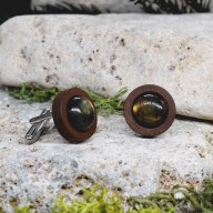 Okrągłe ręcznie wykonane spinki do mankietów w czarnym kolorze ze szklanymi kaboszonami z abstrakcyjnym wzorem