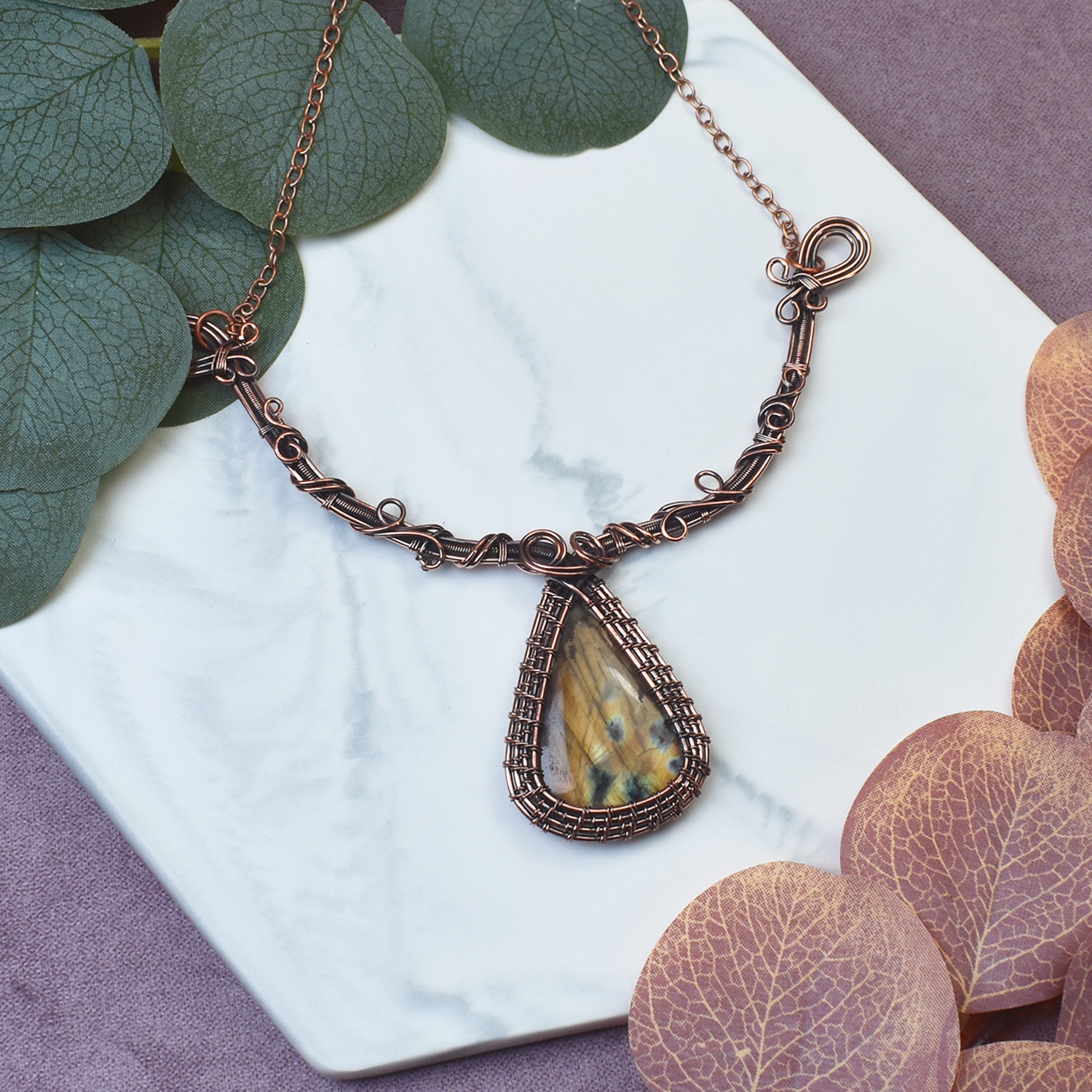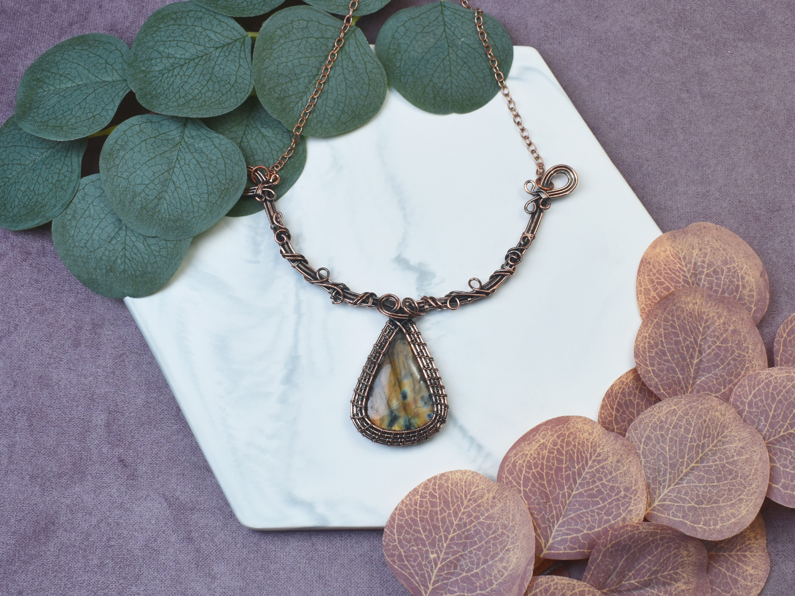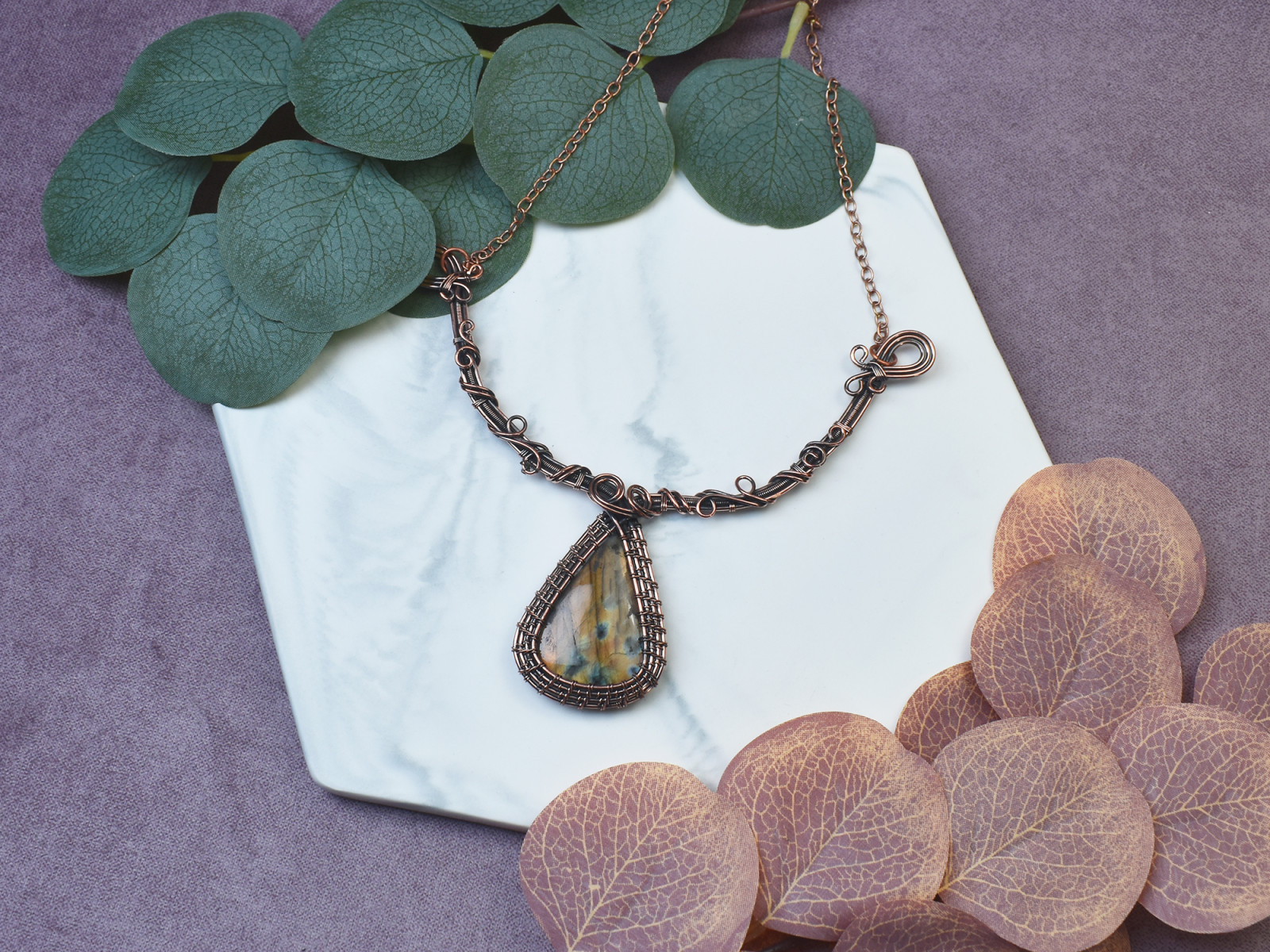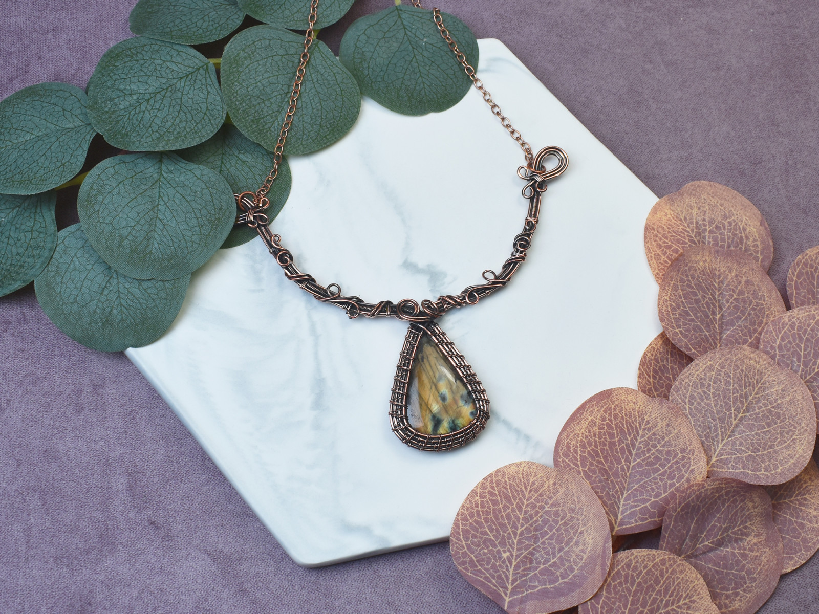 Miedziany naszyjnik wire wrapping z labradorytem #505