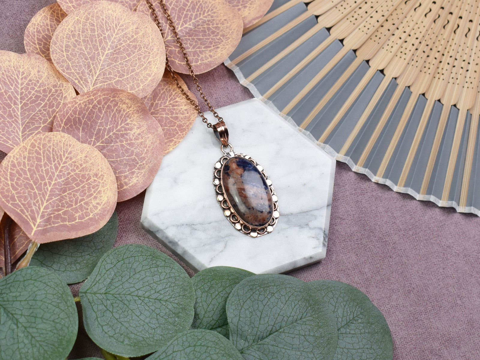 Elegancki wisiorek z miedzią i sodalitem to nie tylko piękny dodatek, ale także talizman korzystny dla ciała i umysłu. Sodalit, o intensywnym niebieskim kolorze, przypisuje się zdolność wspierania spokoju i klarowności myśli. Dodając temu wyjątkowemu wisiorkowi, emanującemu prostotą i stylem, możesz cieszyć się nie tylko estetycznym urokiem, ale także korzystnym wpływem kamienia na Twoje samopoczucie.