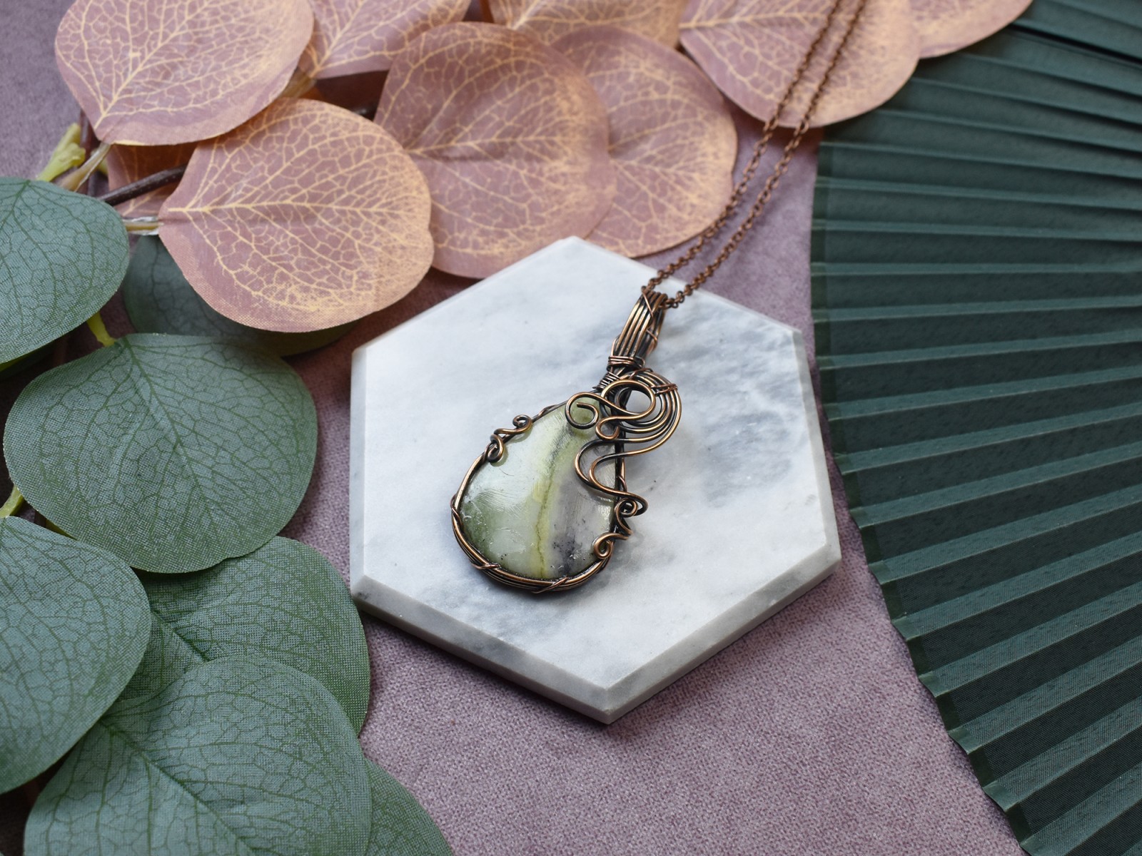 Miedziany wisiorek wire wrapping z amazonitem #233