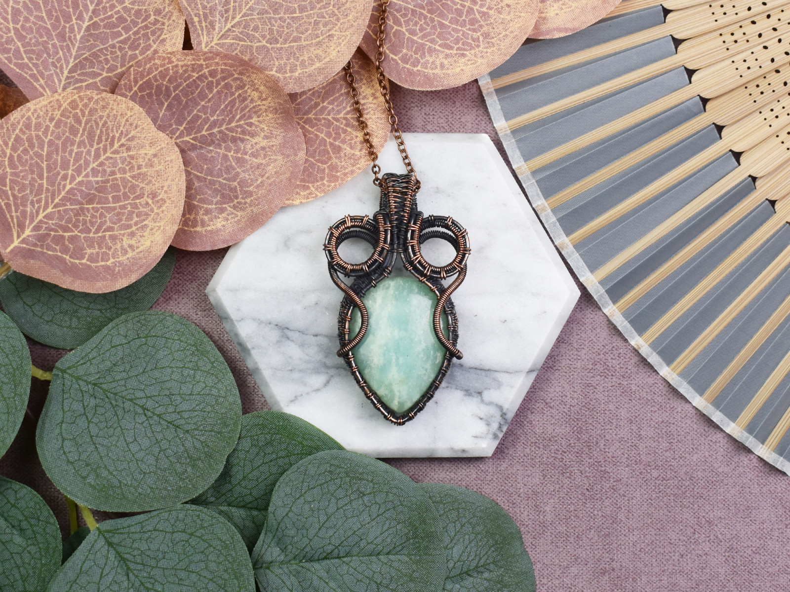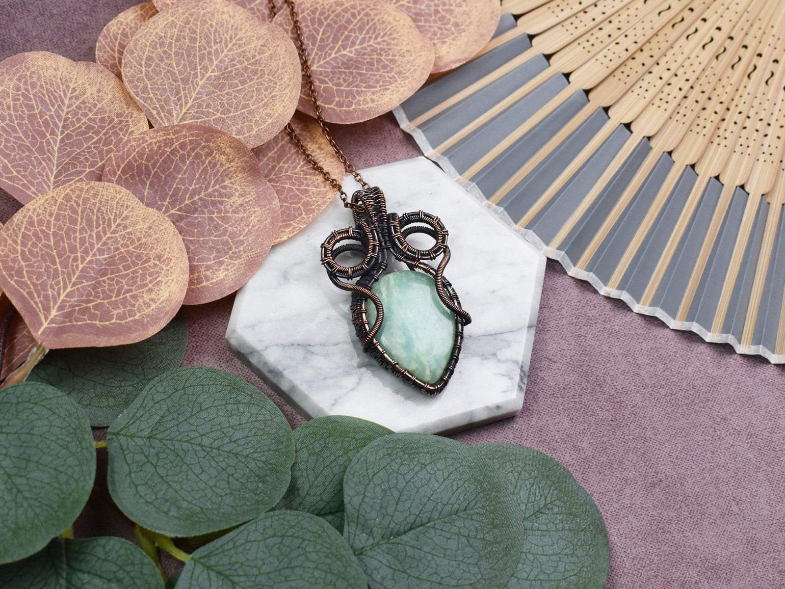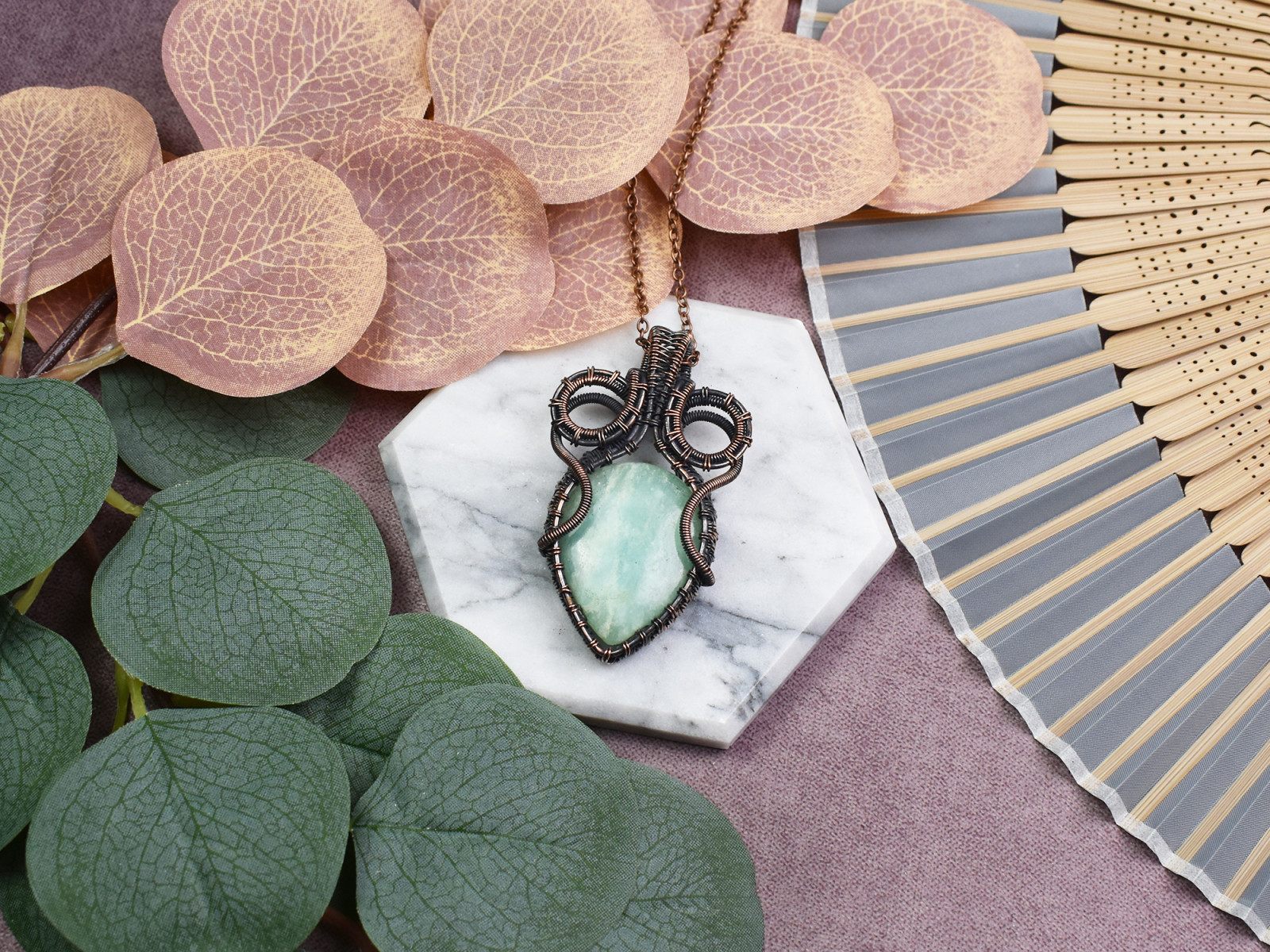 Miedziany wisiorek wire wrapping z amazonitem #530