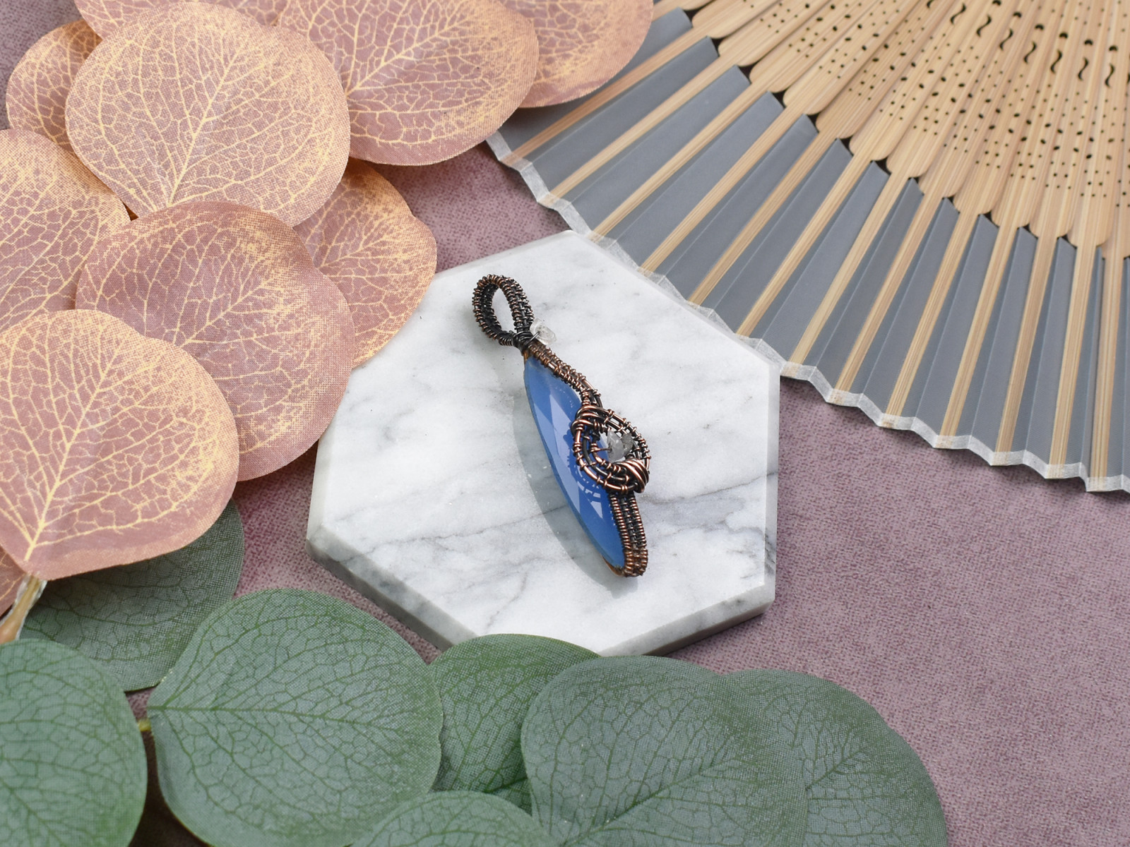 Miedziany wisiorek wire wrapping z chalcedonem #538
