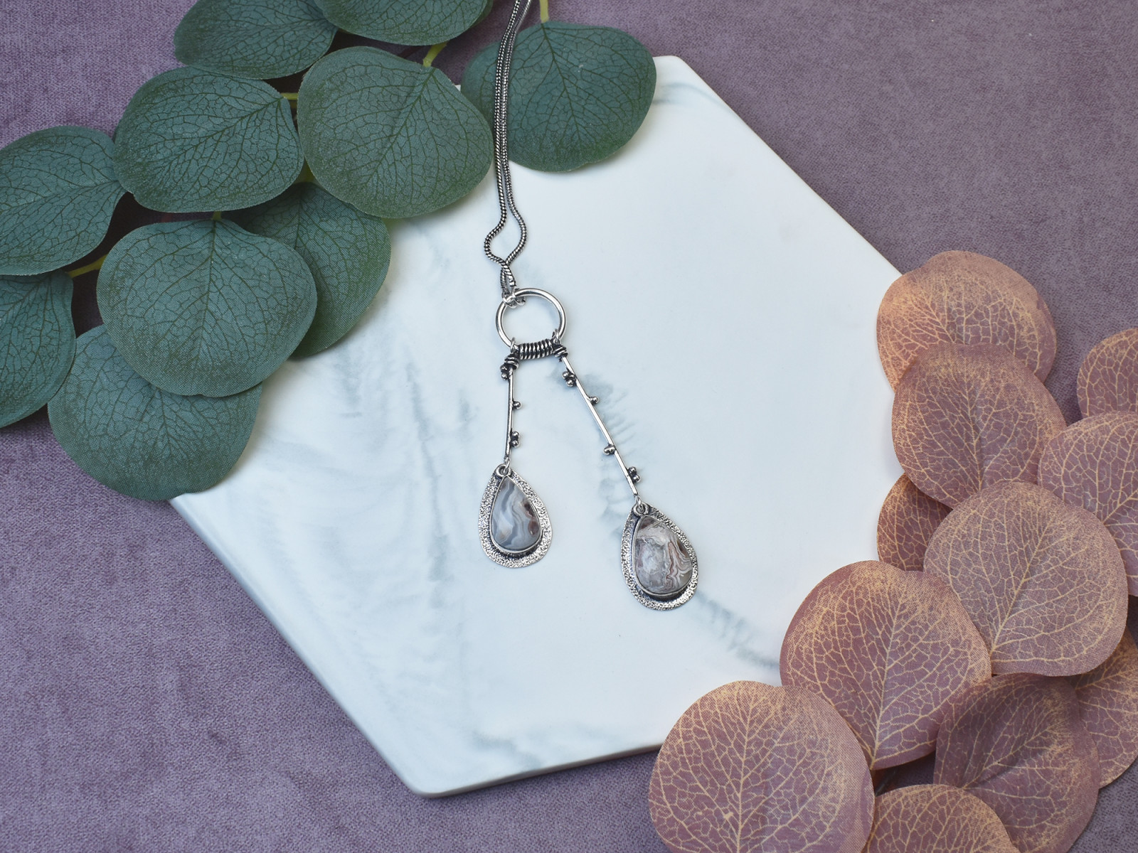 Posrebrzany elegancki wisiorek z agatem crazy lace #511