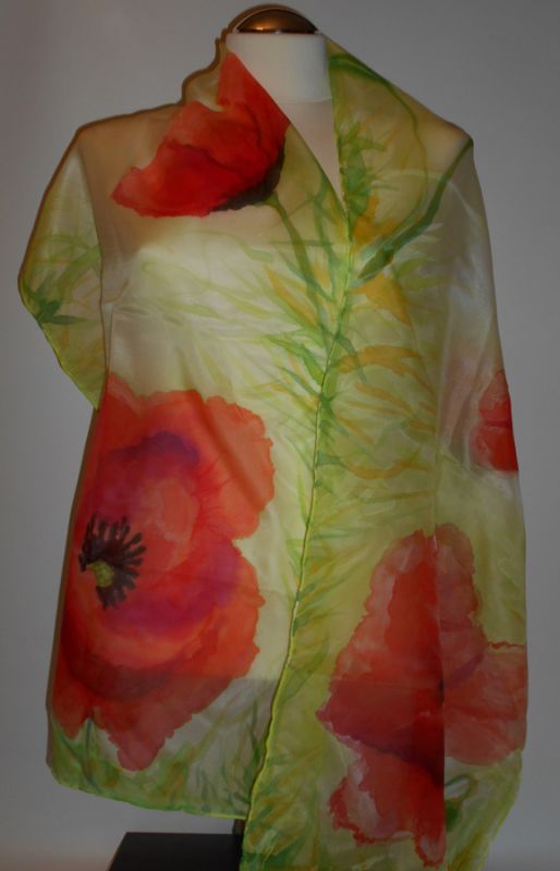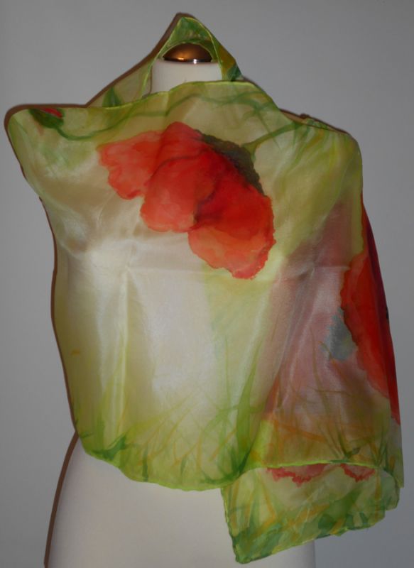 Szal malowany ręcznie na cieniutkim jedwabiu naturalnym Pongee /100% silk/