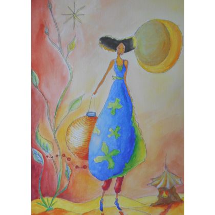 Rysunek formatu A3 wykonany tuszem i akwarelą na papierze, oprawiony w passe-partout.