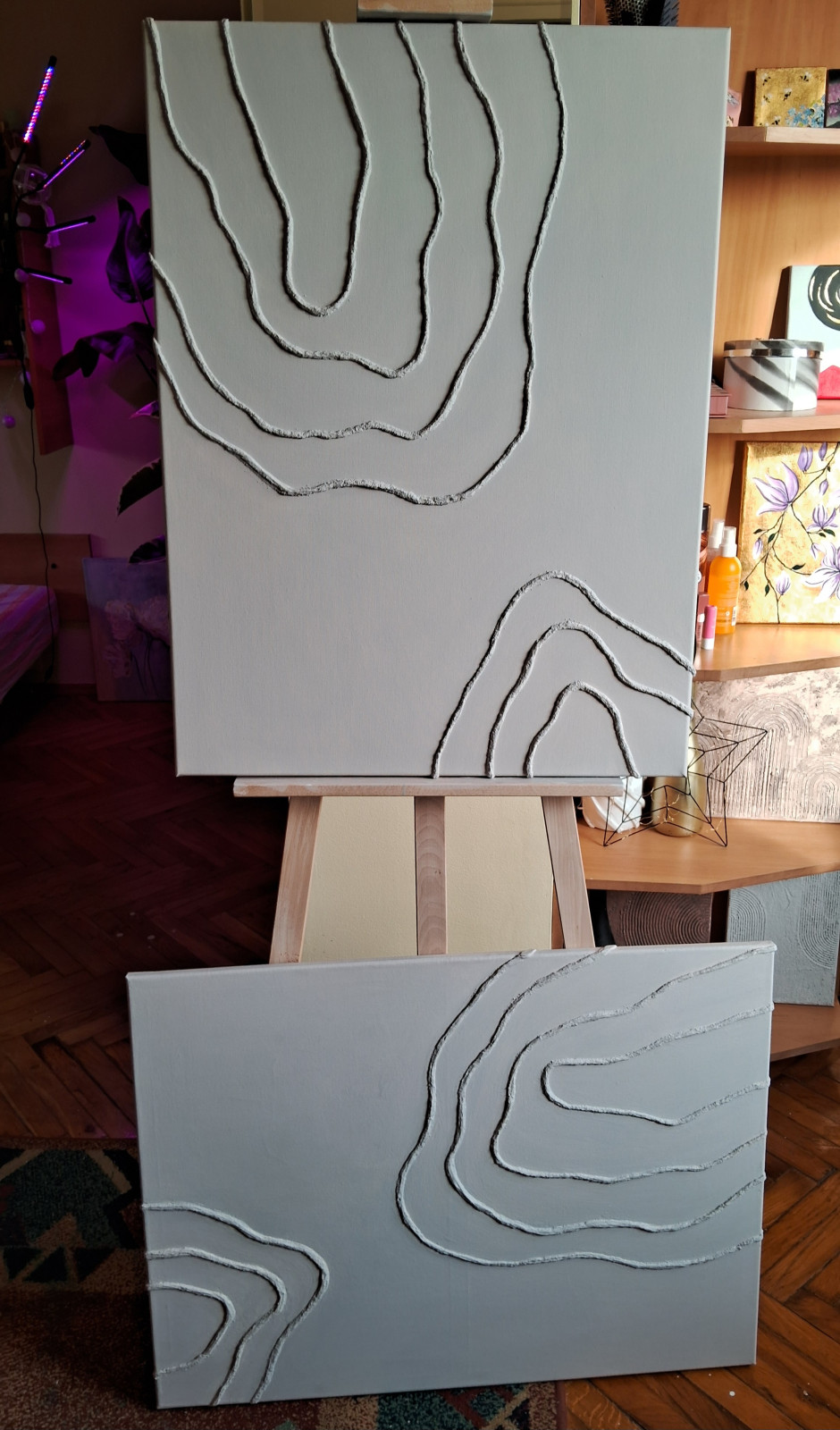 2 obrazy na płótnie ręcznie malowane akrylami z elementami 3D strukturalne