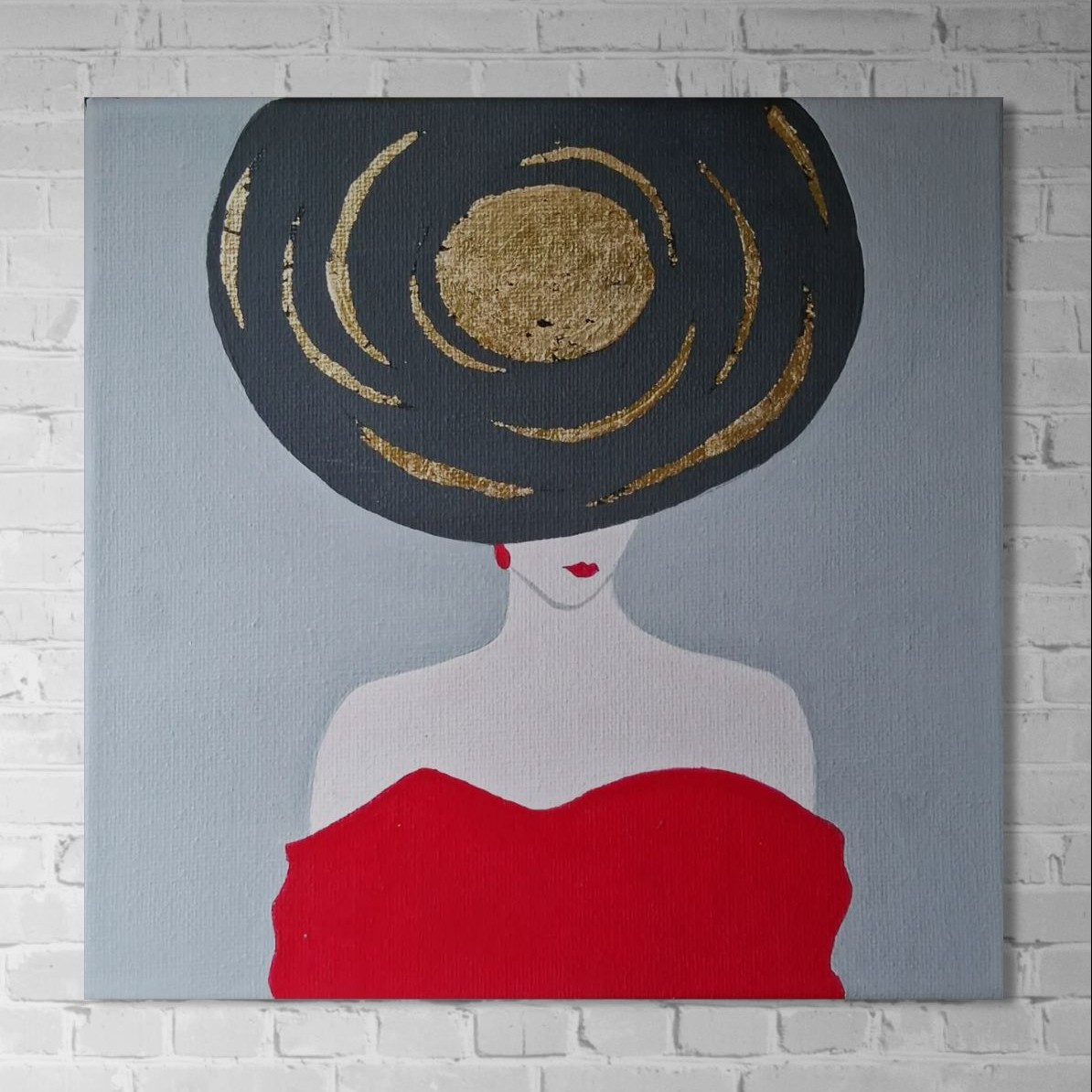 Obraz malowany akrylami na płótnie Kobieta abstrakcja minimalistyczny 20x20