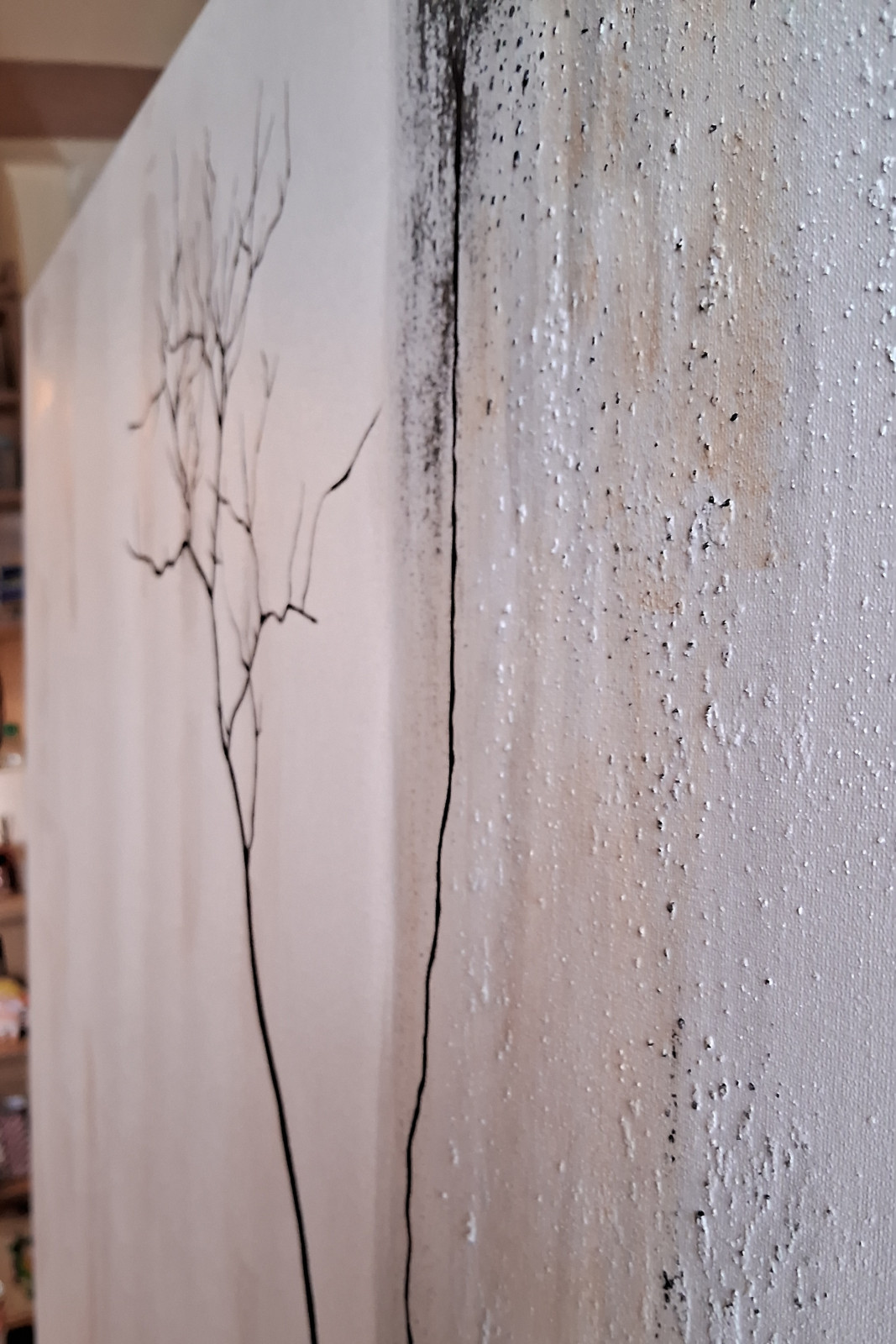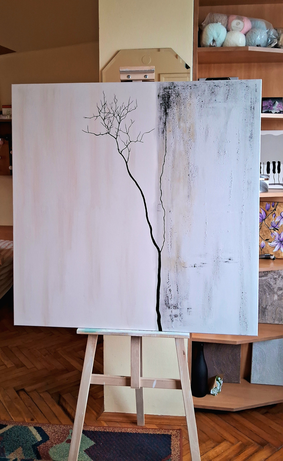 Obraz ręcznie malowany na płótnie bawełnianym. Ma zamalowane boki. Nie wymaga ramy. Sygnowany na rewersie.