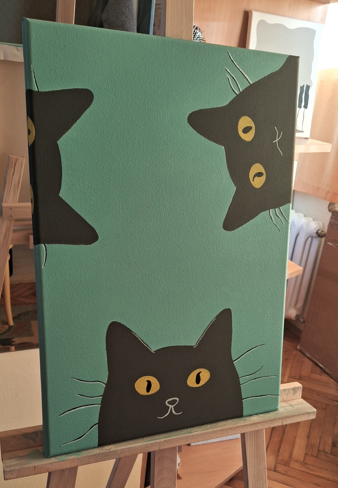 Obraz na Płótnie Czarne koty Ręcznie Malowany Akryl 60x40 zielony