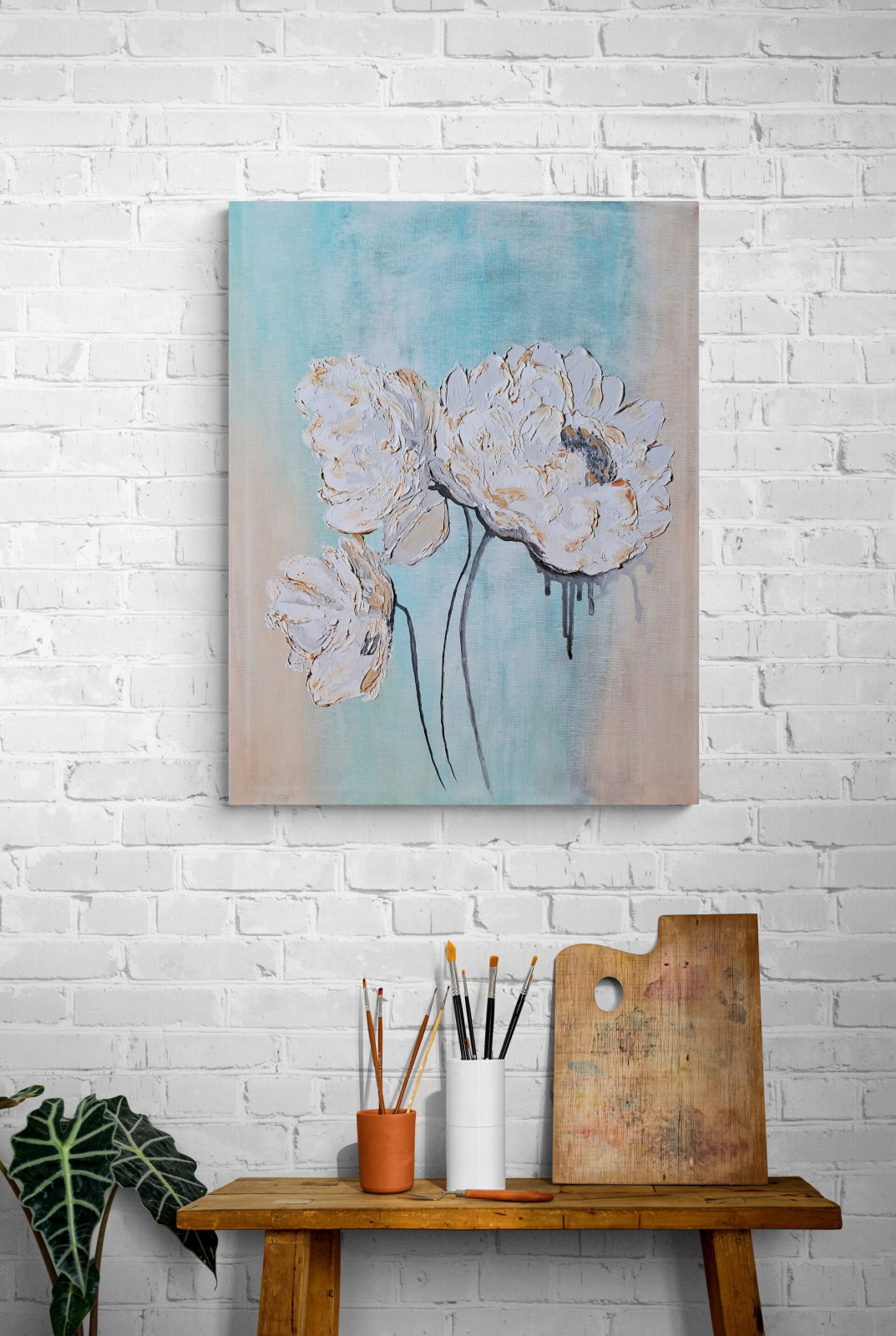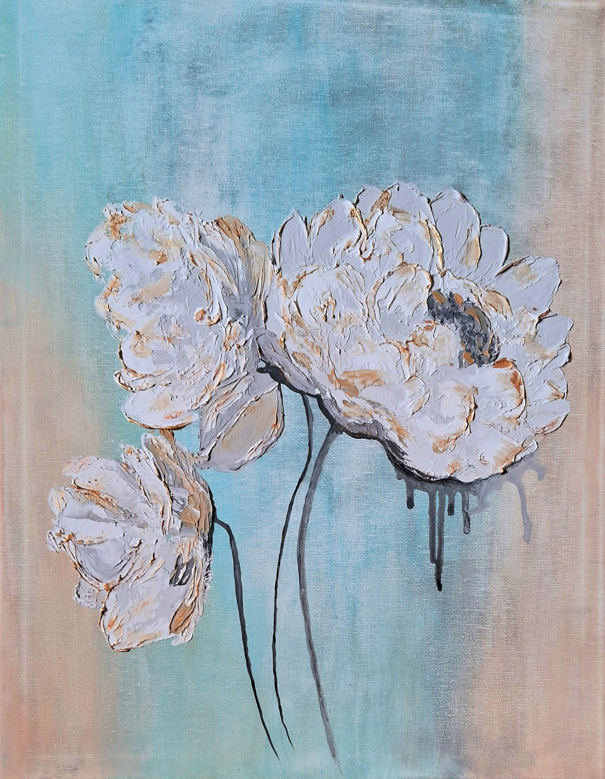 Obraz na płótnie ręcznie malowany akrylami Kwiaty strukturalny 40/50