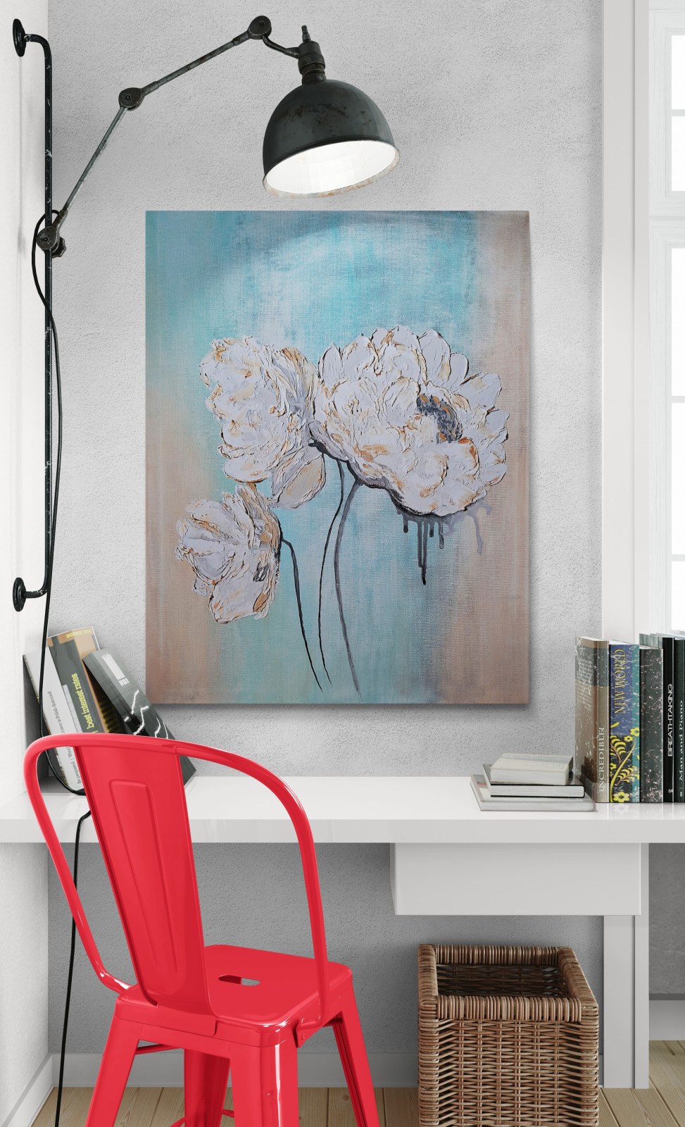 Obraz ręcznie malowany na płótnie bawełnianym. Ma zamalowane boki. Nie wymaga ramy. Sygnowany na rewersie.