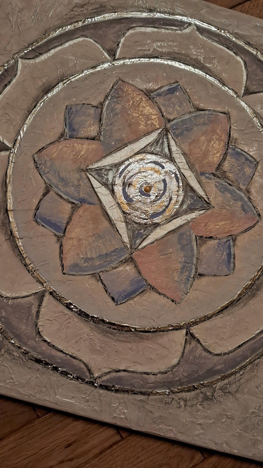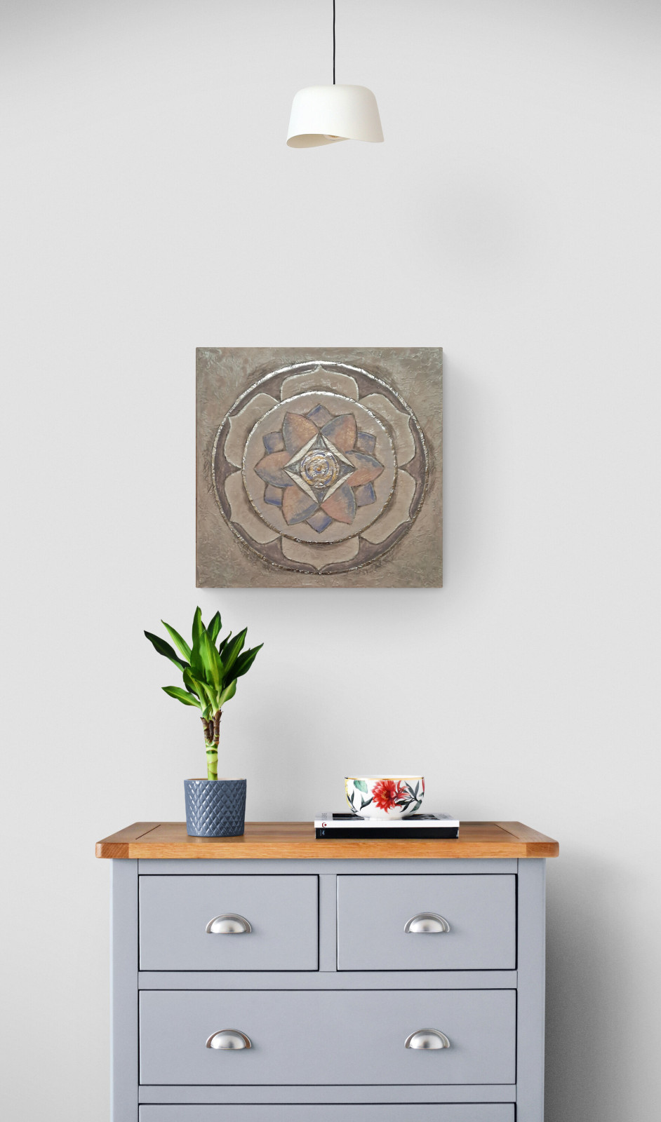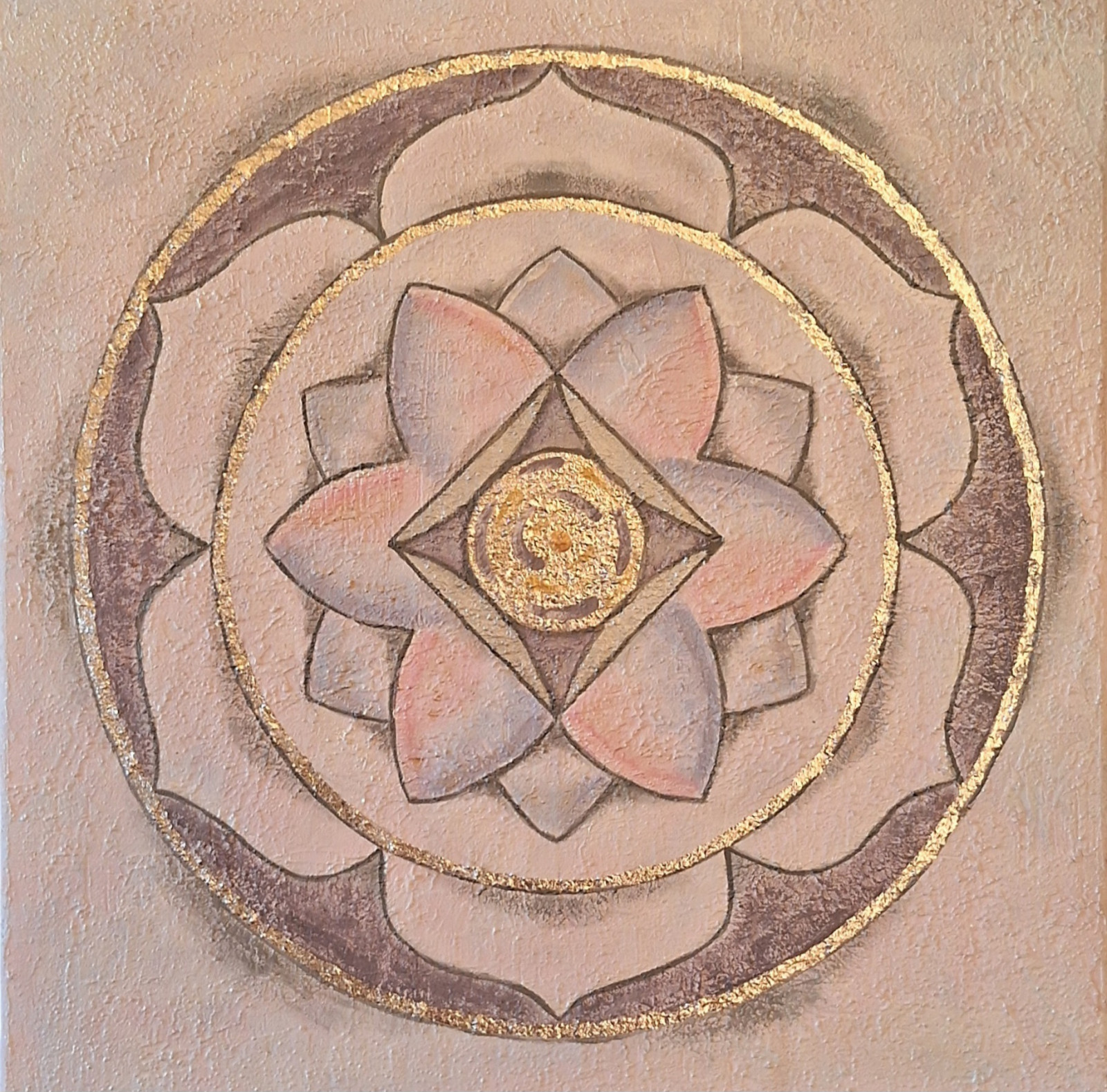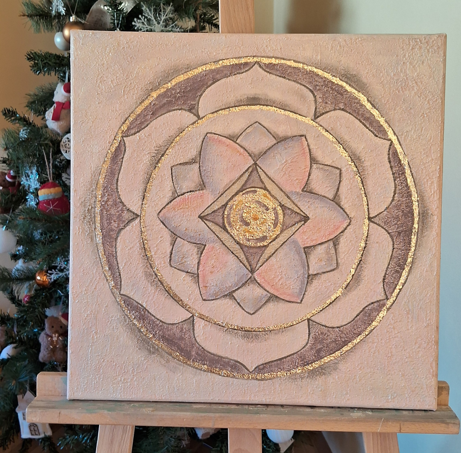 Obraz na płótnie ręcznie malowany akrylami mandala Lotus ze srebrom 40x40