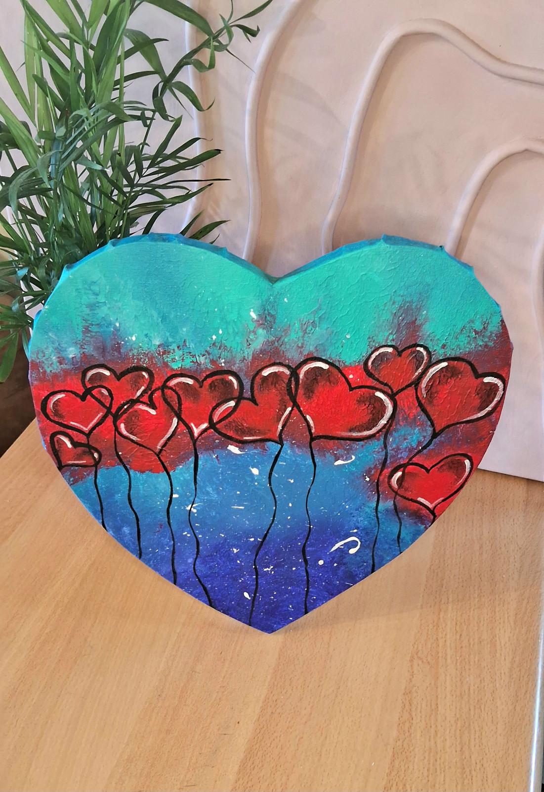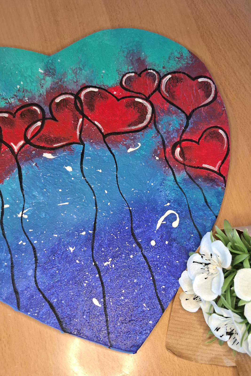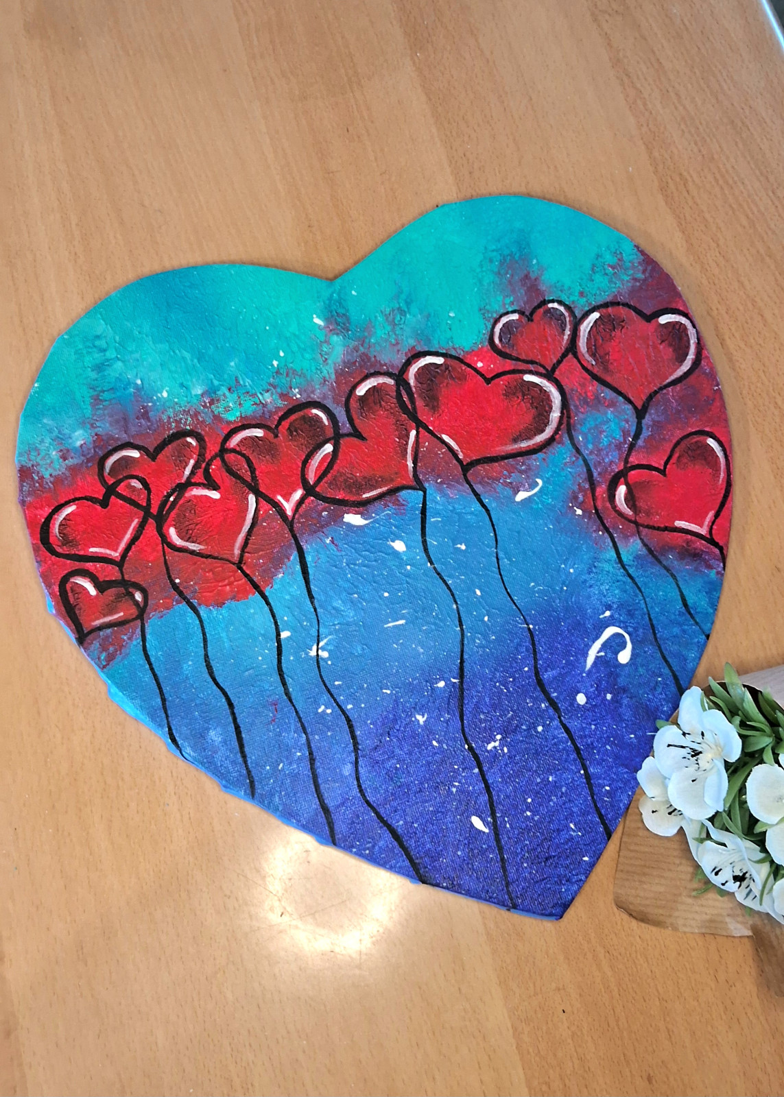 Obraz na płótnie ręcznie malowany akrylami Serduszko abstrakcja 29x29