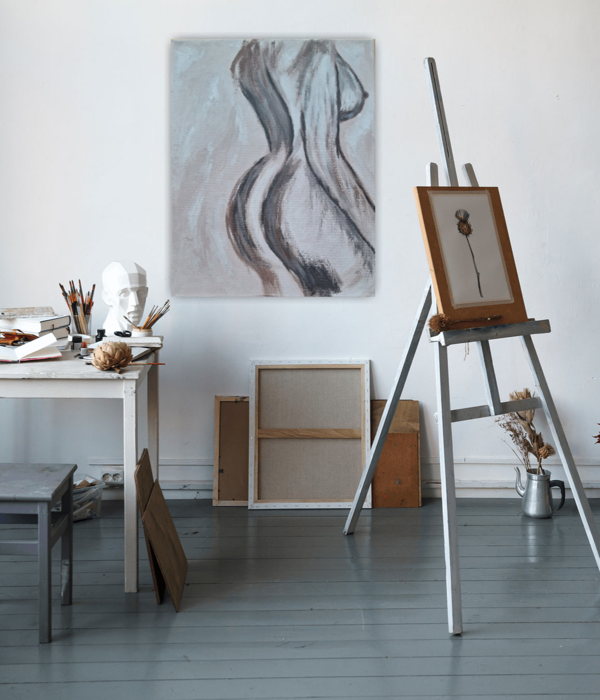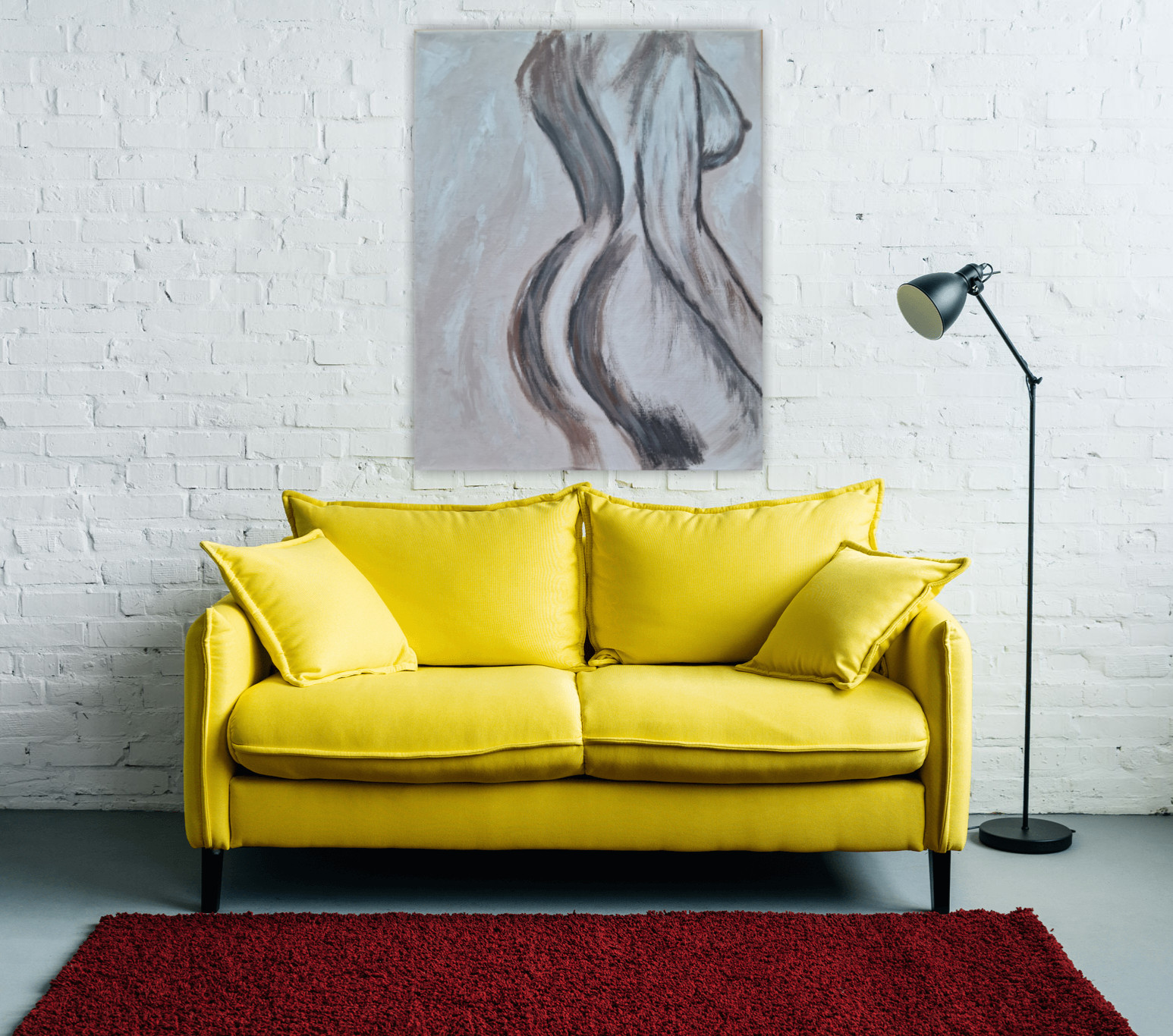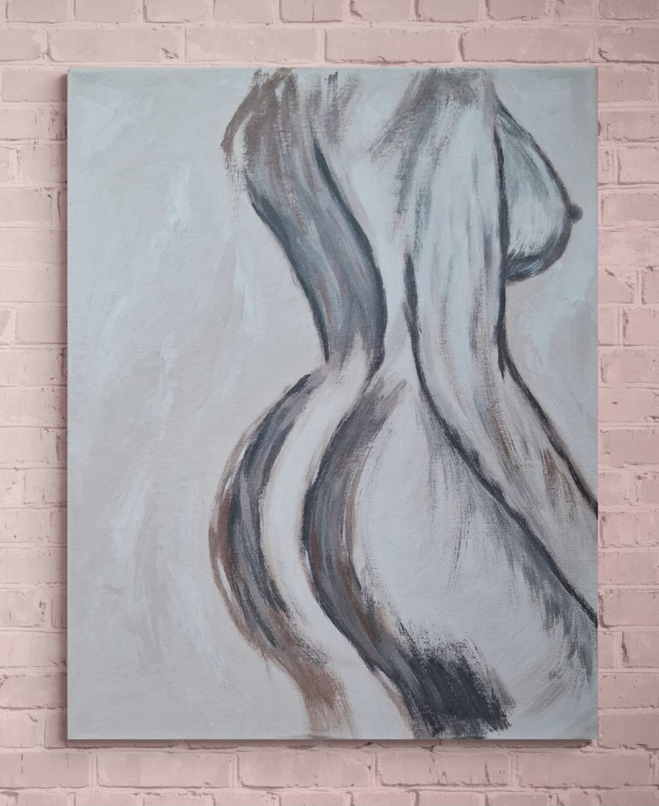Obraz ręcznie malowany akrylami na płótnie bawełnianym Kobieta abstrakcja minimalistyczna 55x75