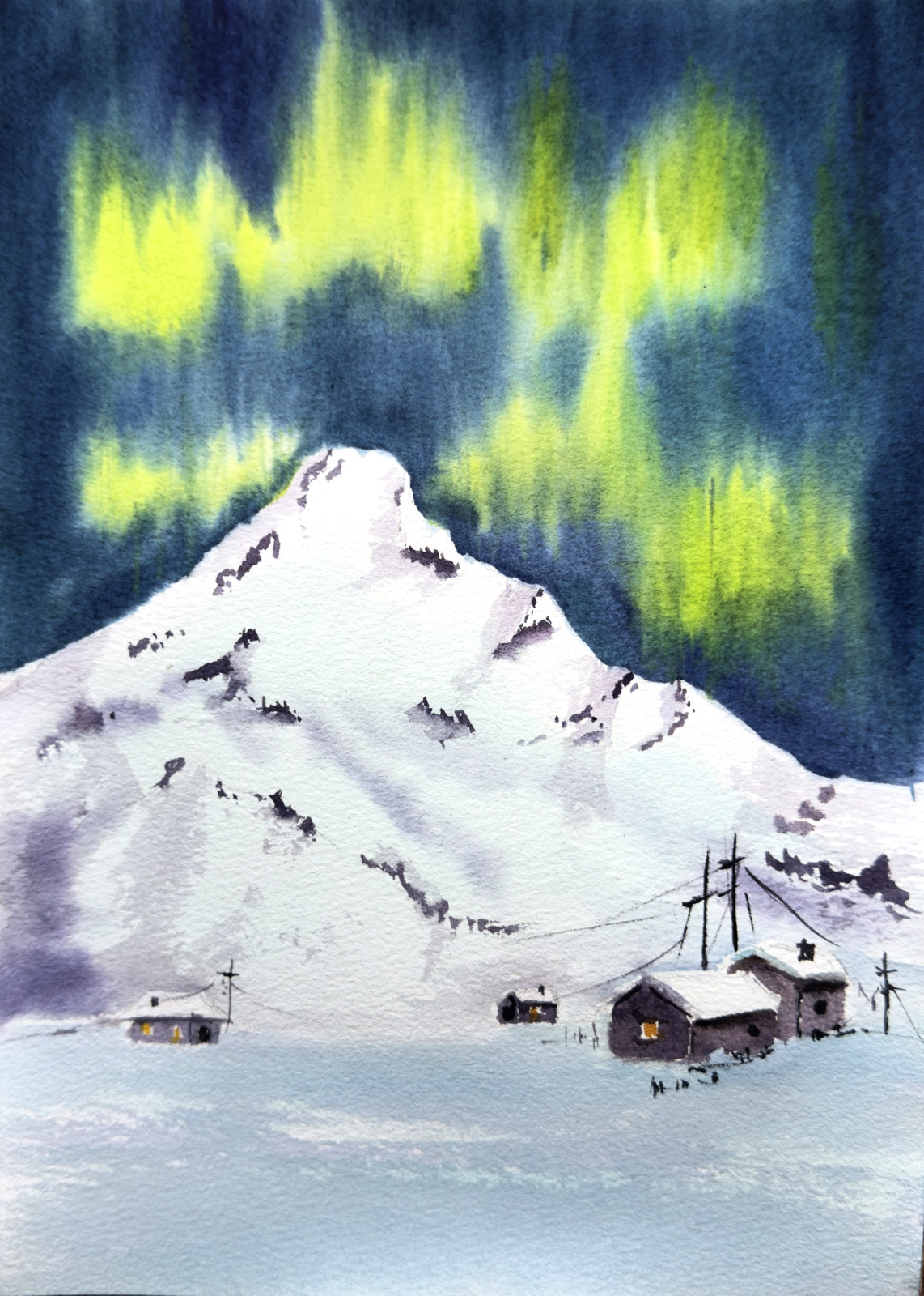 Technika: Akwarela na papierze wysokiej jakości o fakturze i gramaturze 200 g/m² 100% bawełna.