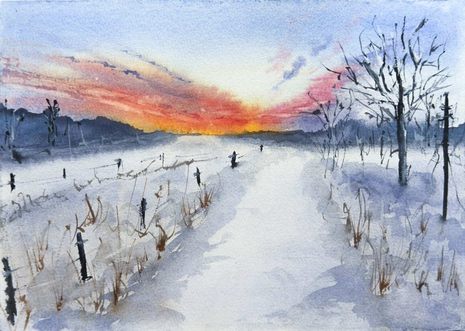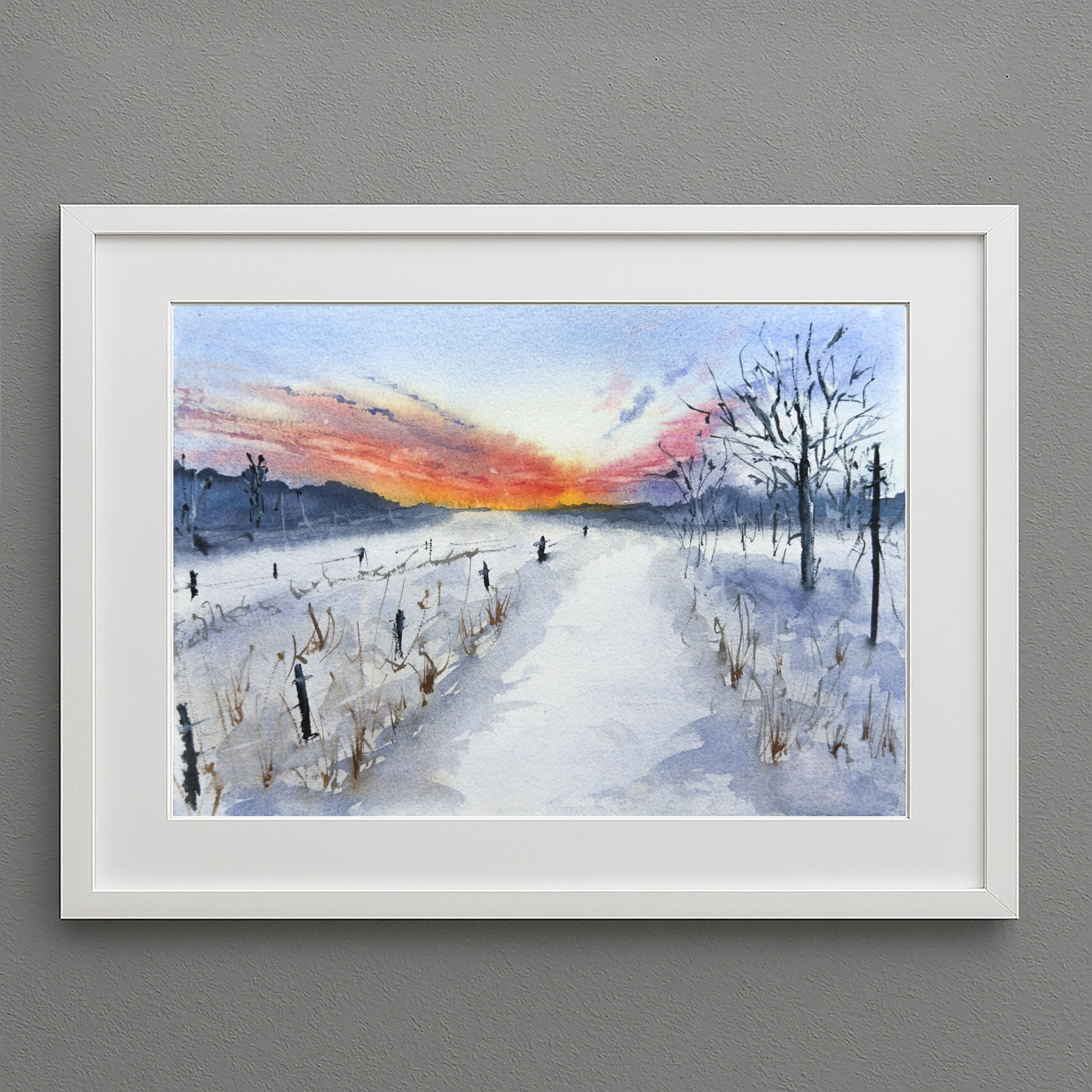 Technika: Akwarela na papierze wysokiej jakości o fakturze i gramaturze 300 g/m² 100% bawełna.
