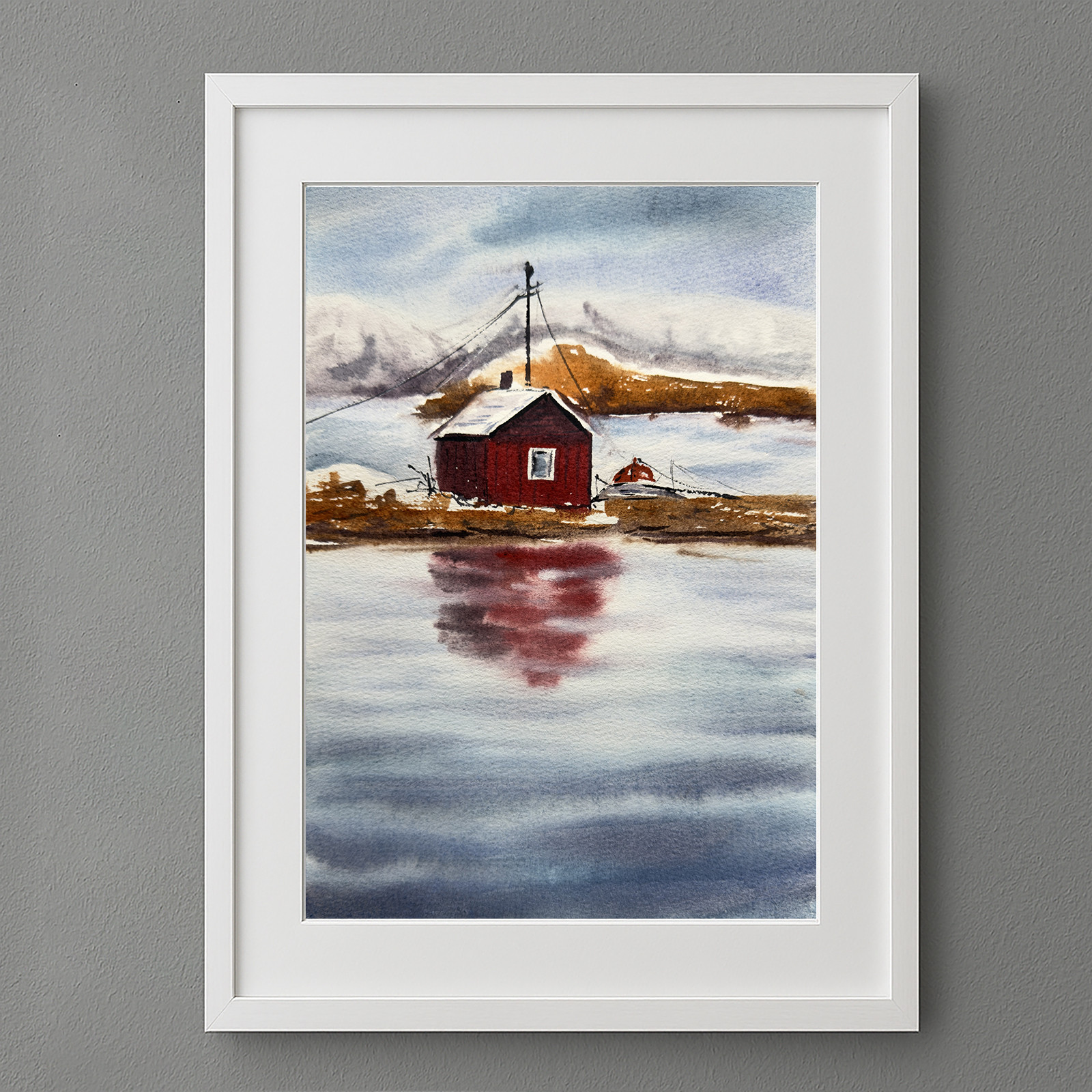 Technika: Akwarela na papierze wysokiej jakości o fakturze i gramaturze 200 g/m² 100% bawełna.
