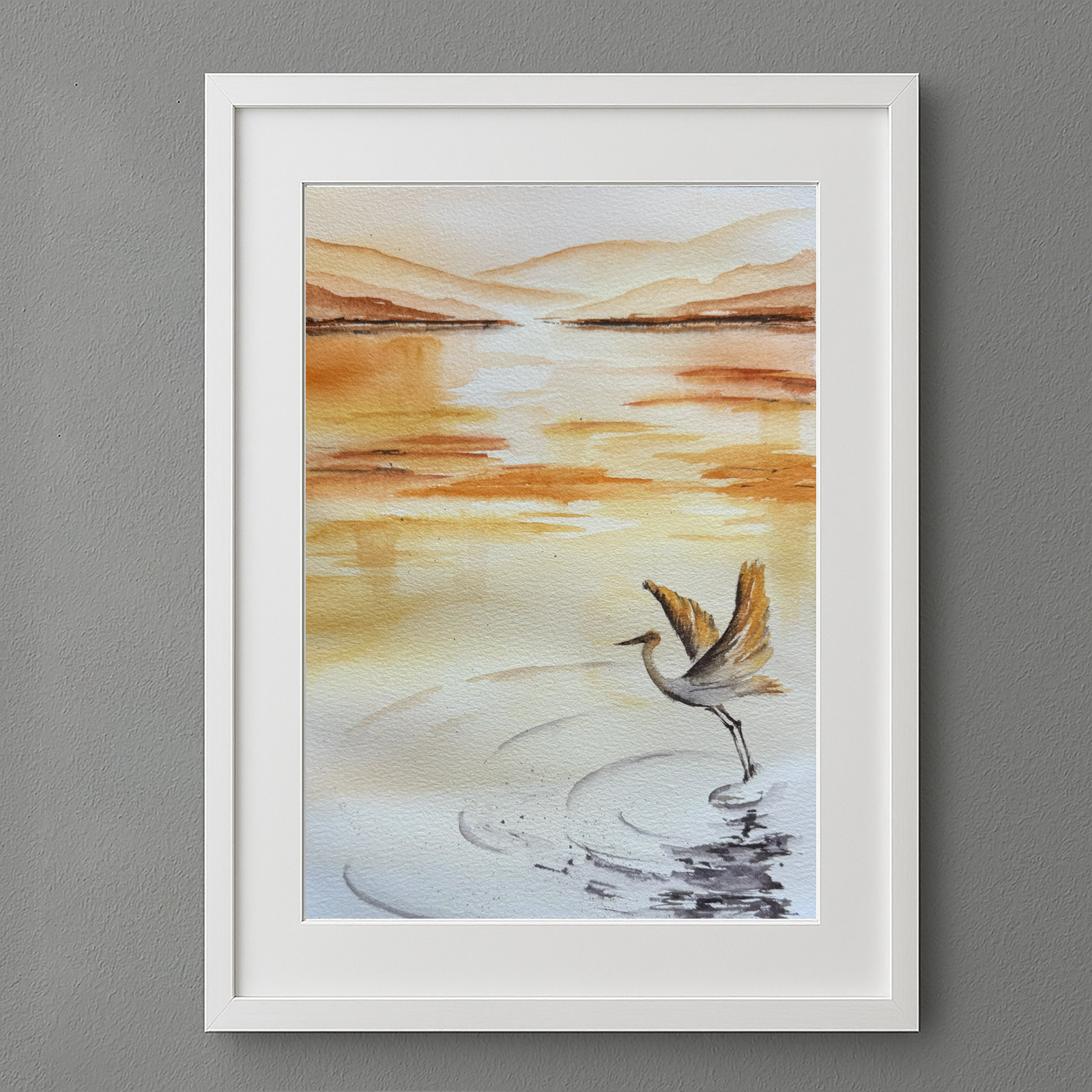 Technika: Akwarela na papierze wysokiej jakości o fakturze i gramaturze 200 g/m² 100% bawełna.