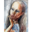 Portret akwarelowy Pani M. wykonany na białym papierze do akwareli o wymiarach 29.7 cm x 39.7 cm, tłoczonym na zimno o gramaturze 300 g/m2, namalowany farbami akwarelowymi Rembrandt, praca sygnowana w prawym dolnym rogu, oryginał, sprzedawana bez ramy, wysyłka pocztą, bezpiecznie zapakowana.