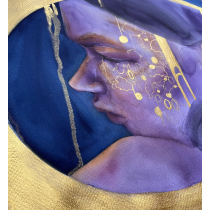 Portret Uwięziona, wykonany na białym papierze do akwareli o wymiarach 50 cm x 35,5 cm, o gramaturze 300 g/m2, namalowany farbami akwarelowymi Rembrandt, praca sygnowana w prawym dolnym rogu, oryginał, sprzedawana bez ramy, wysyłka pocztą, bezpiecznie zapakowana.